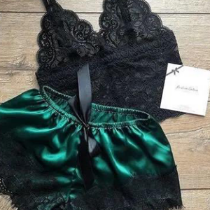Summer Sexy Lingerie pajamas Set Women Silk Set Satin Short Pajama Set